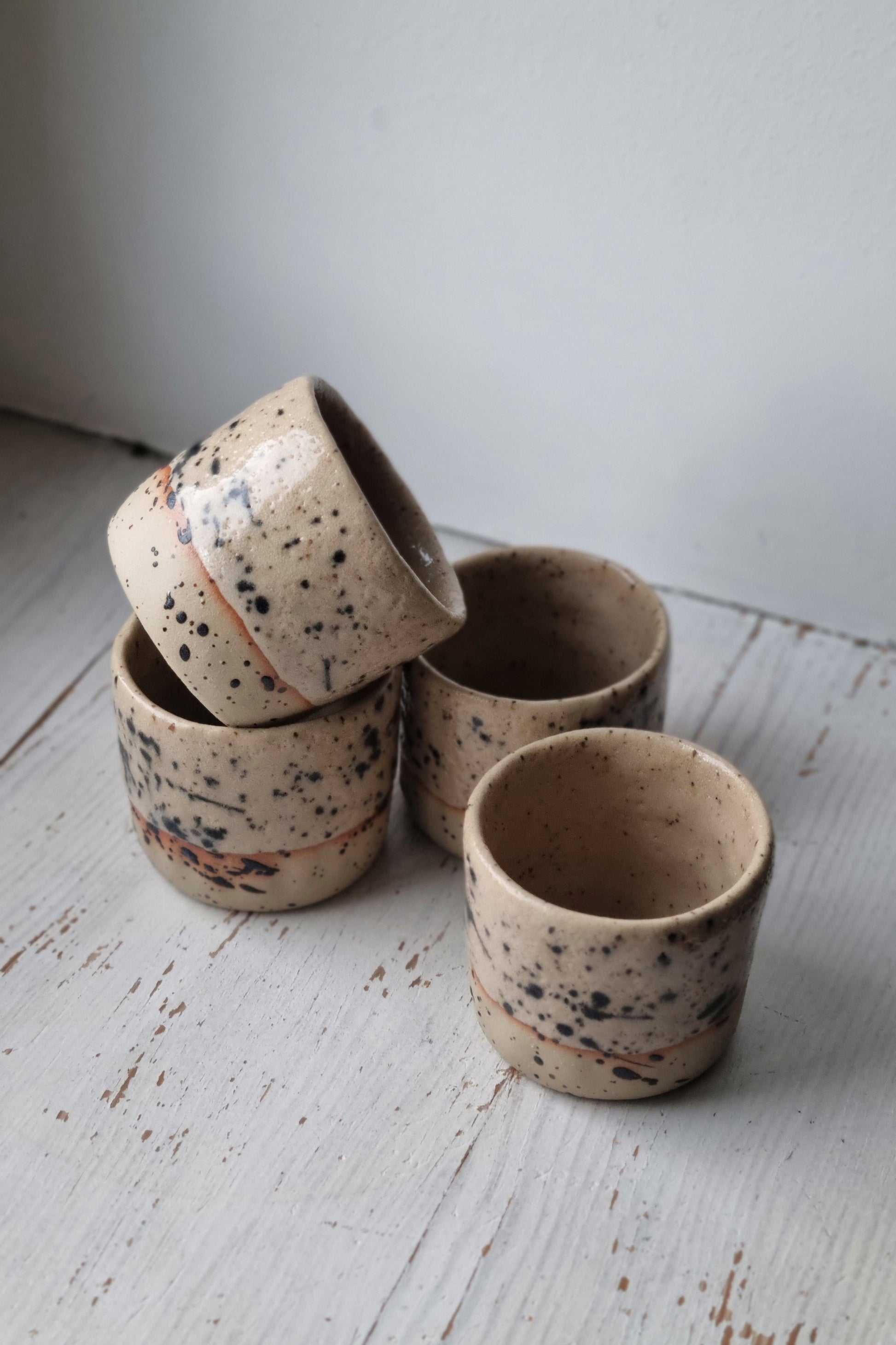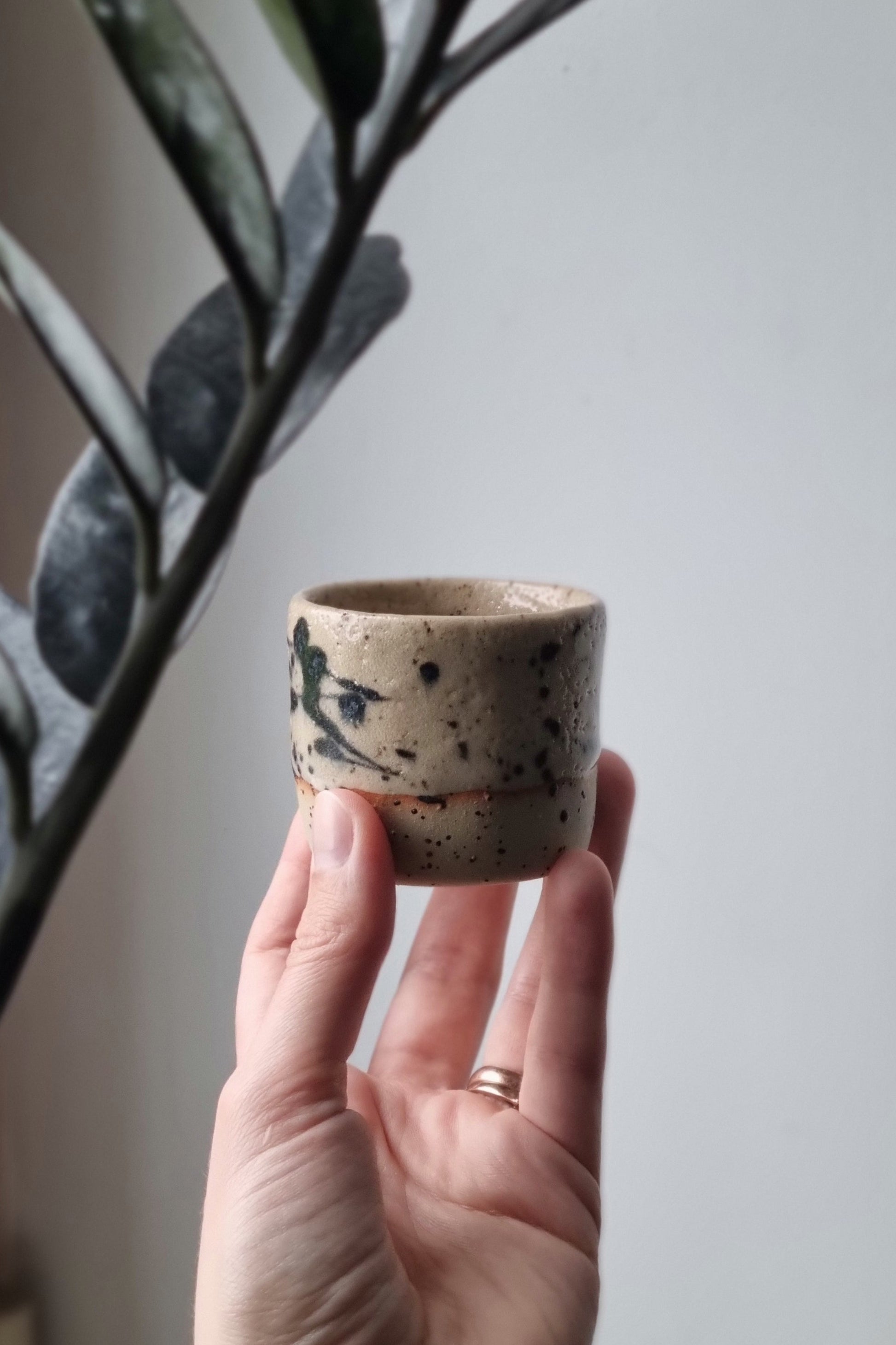 Subtiliai žaismingas espresso puodelis.