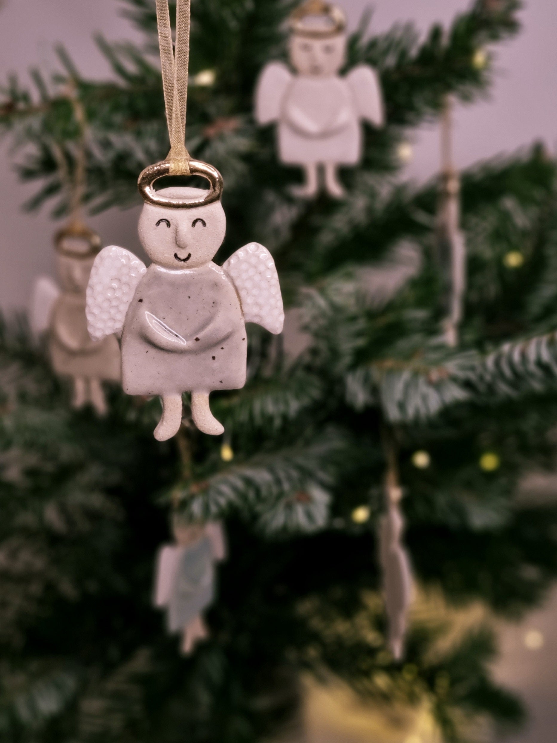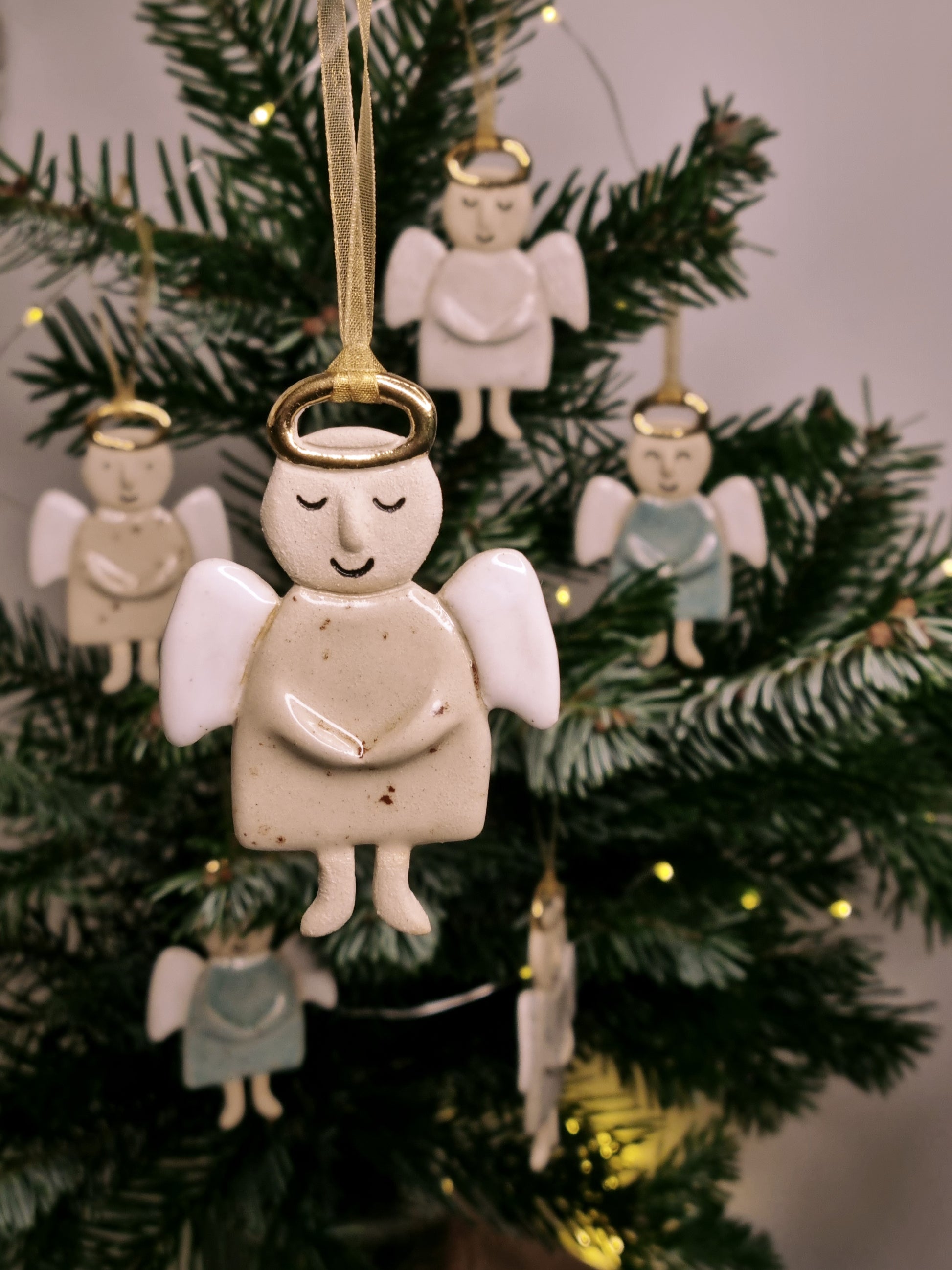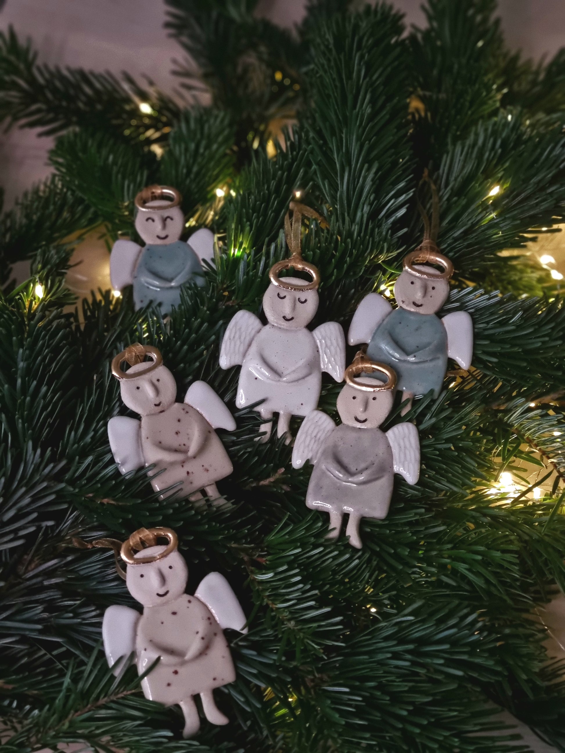 Jaukus rankų darbo kalėdinių angeliukų rinkinys, kuris džiugins ir saugos Jūsų namų ramybę arba taps itin gražia ir prasminga dovana artimiesiems. Visi angelai kruopščiai lipdyti rankomis ir papuošti aukso nimbu. Kiekvienas angeliukas skiriasi savo išraiška, spalva ar sparnelių tekstūra.