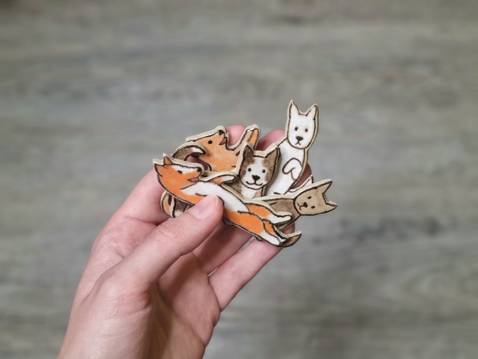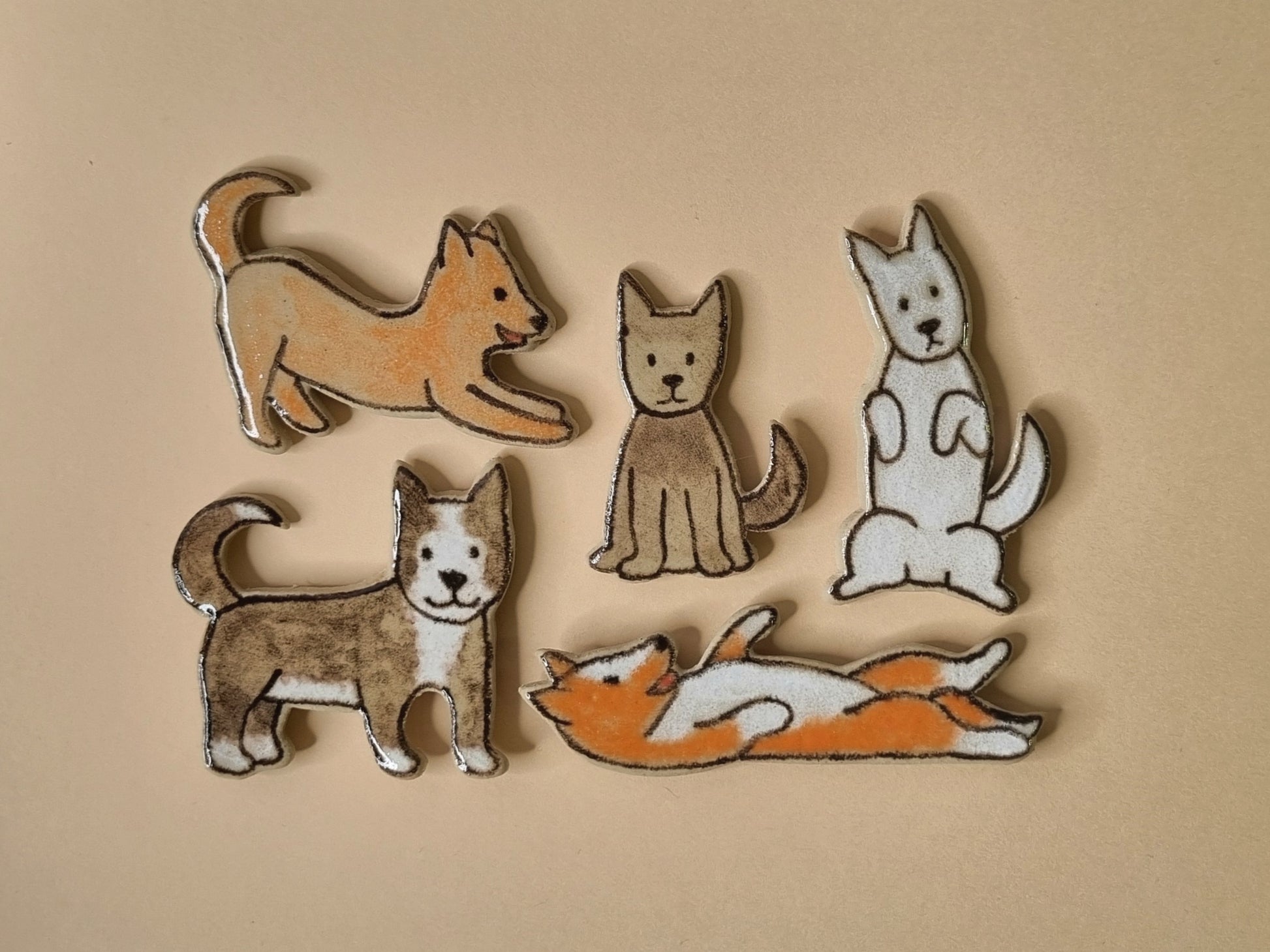 Kiekvienas magnetukas kruopščiai išpieštas rankomis, todėl, kaip kad ir pasitaiko tikrame gyvenime, nors ir būdami panašūs, visi šuniukai turi savitą charakterį ir asmenybę.