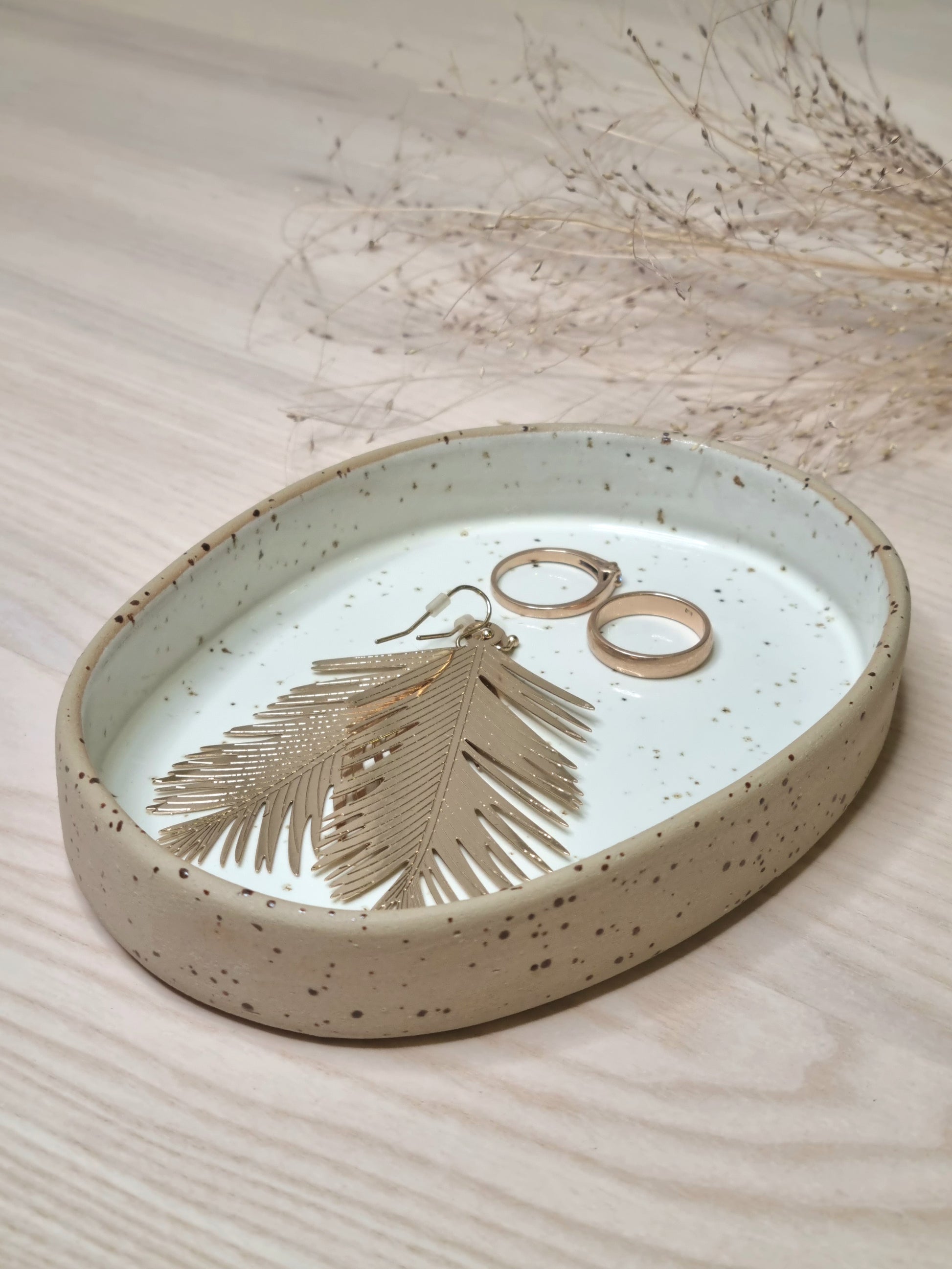 Minimalistinė lėkštutė papuošalams ar kitoms smulkmenoms. Daug talpinanti, bet tuo pačiu metu neperkraunanti vietos ant stalo.