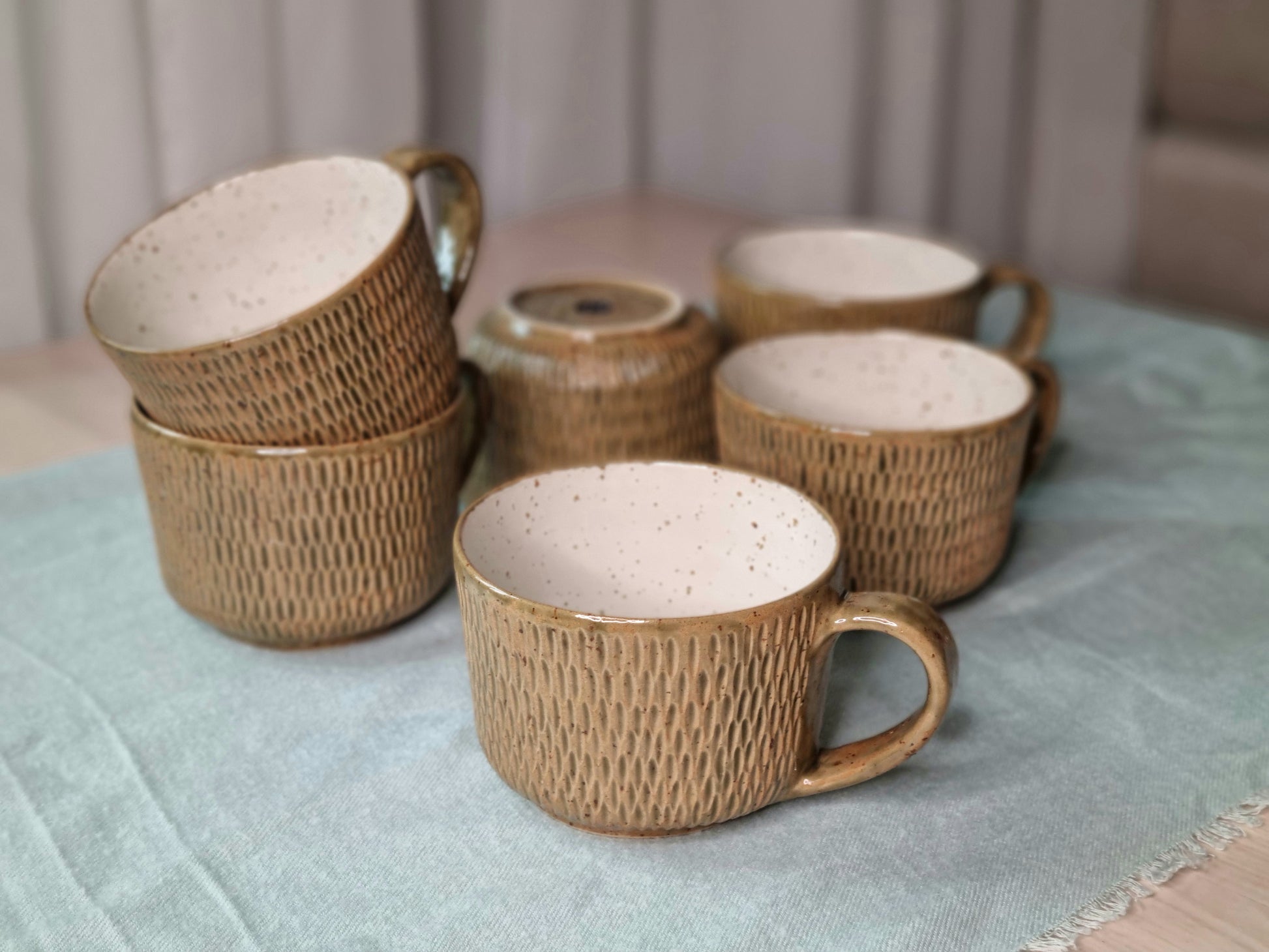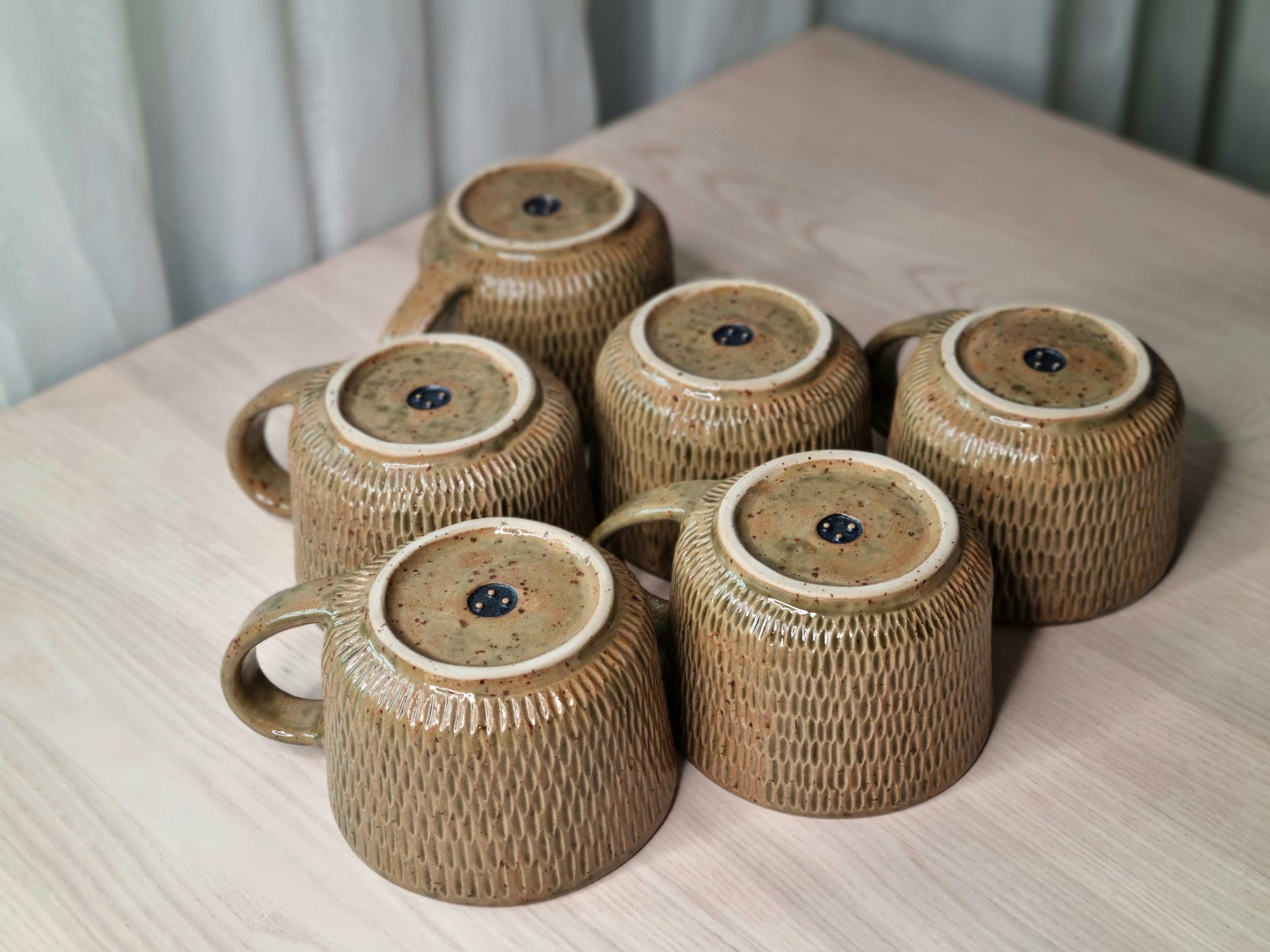 Puodelis lipdytas rankomis, todėl kiekvieno forma bei spalva gali skirtis.