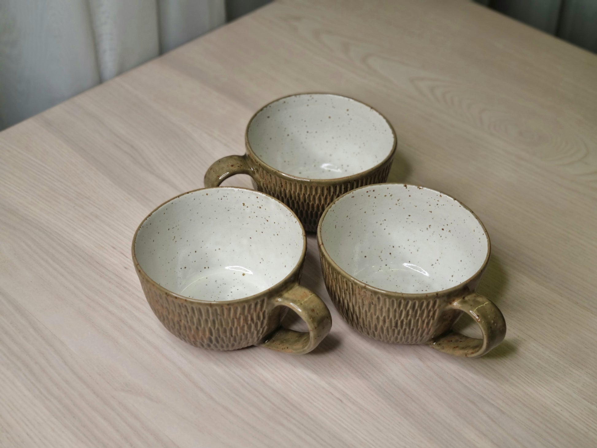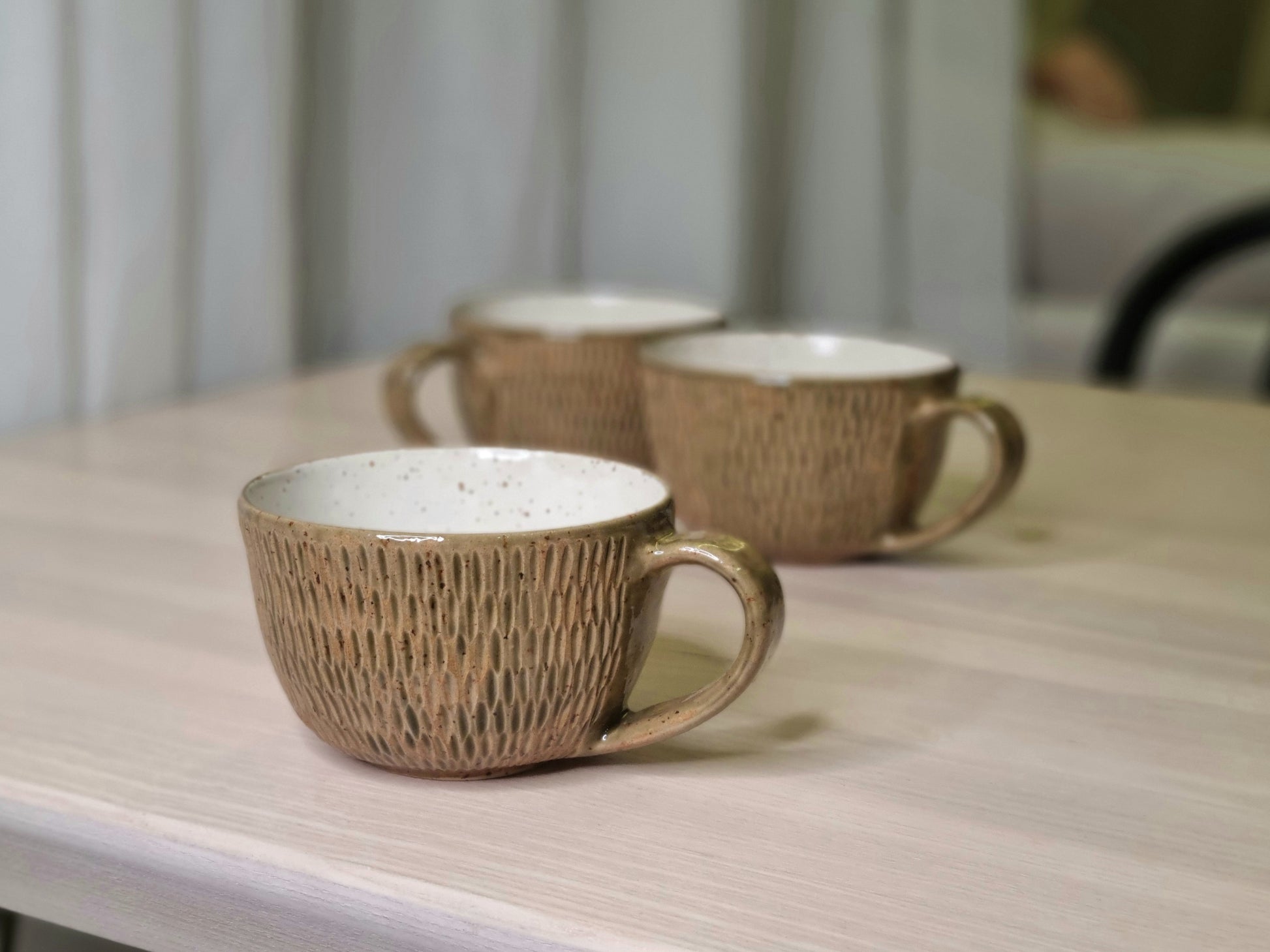 Puodelis lipdytas rankomis, todėl kiekvieno forma bei spalva gali skirtis.