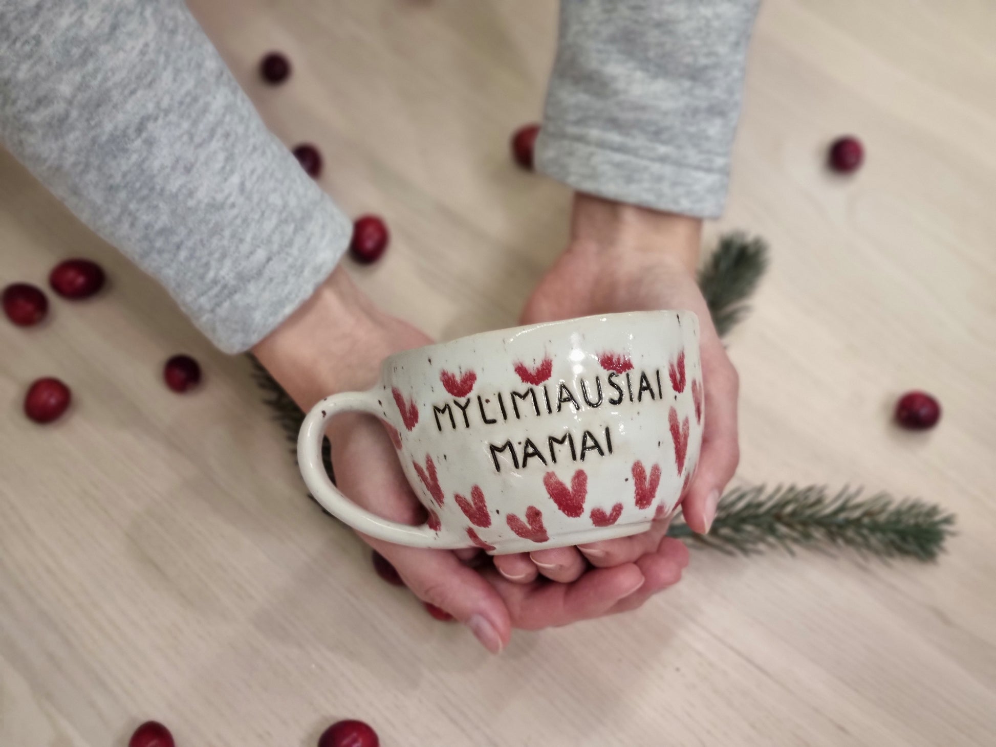 Balto molio puodelis pačiai mylimiausiai Mamai. Elegantiškos apvalios formos.