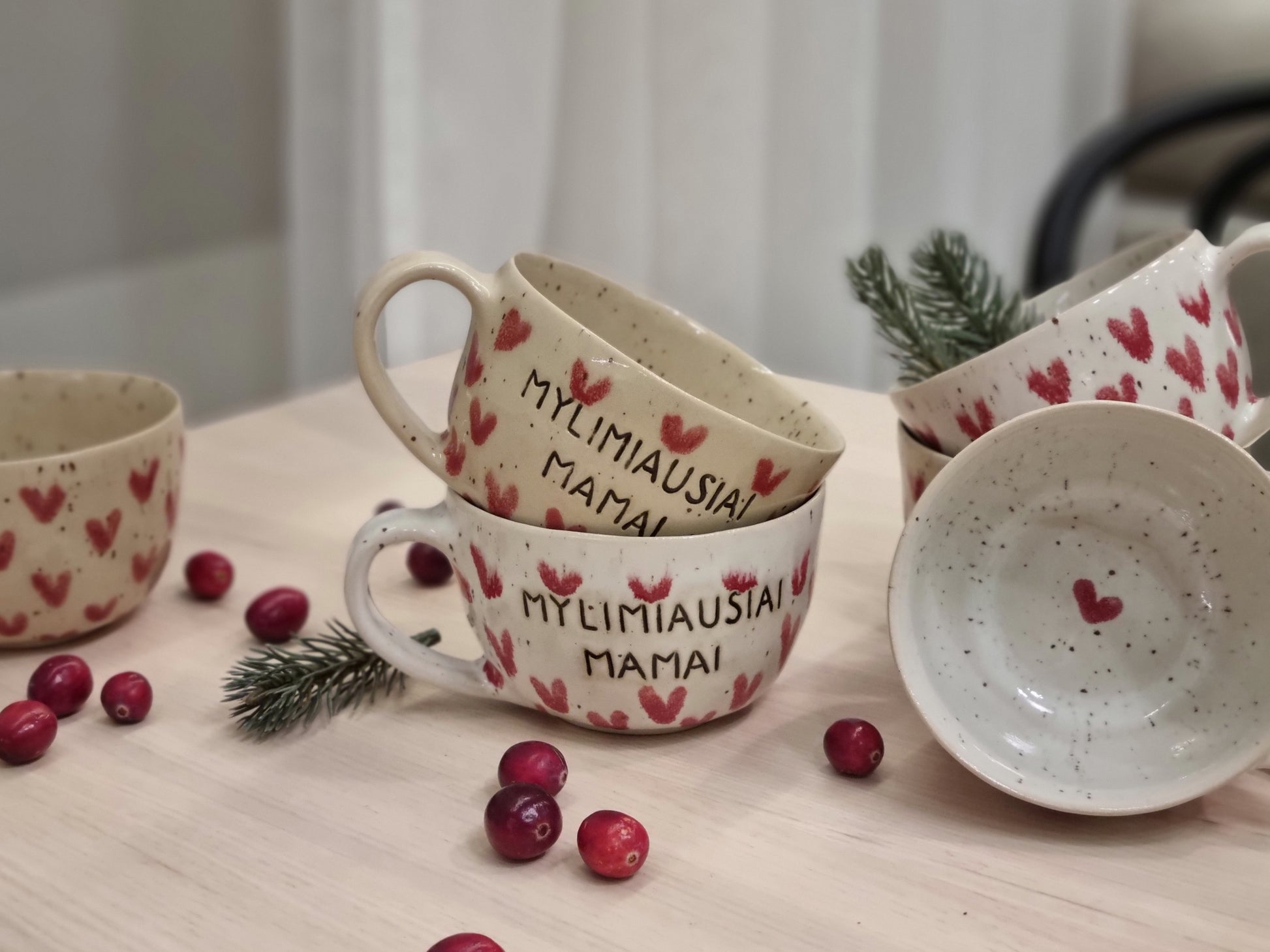 Puodelis lipdytas rankomis, todėl kiekvieno forma bei spalva gali skirtis.