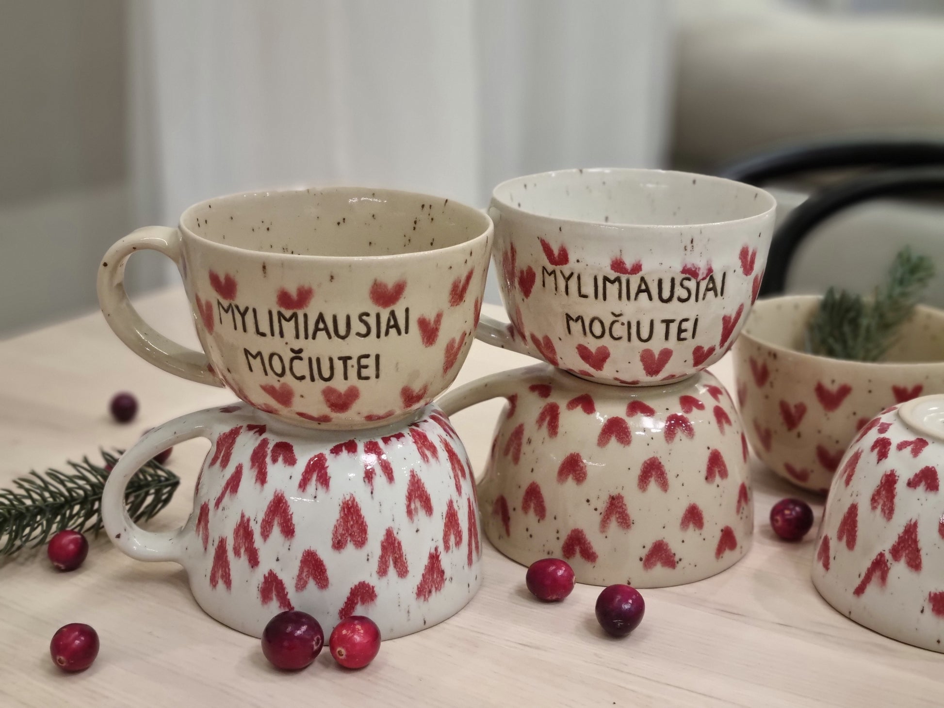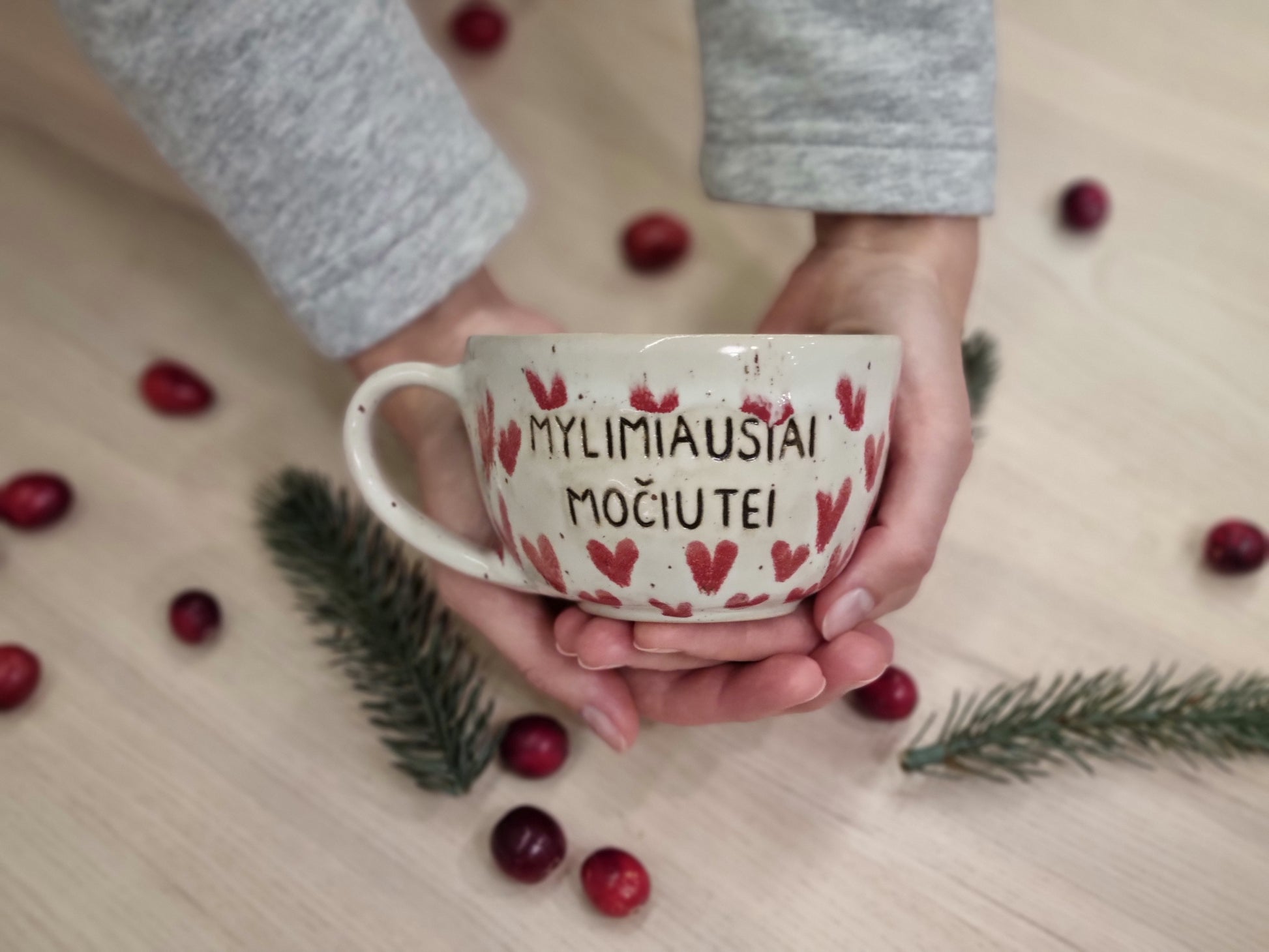 Puodelis lipdytas rankomis, todėl kiekvieno forma bei spalva gali skirtis.