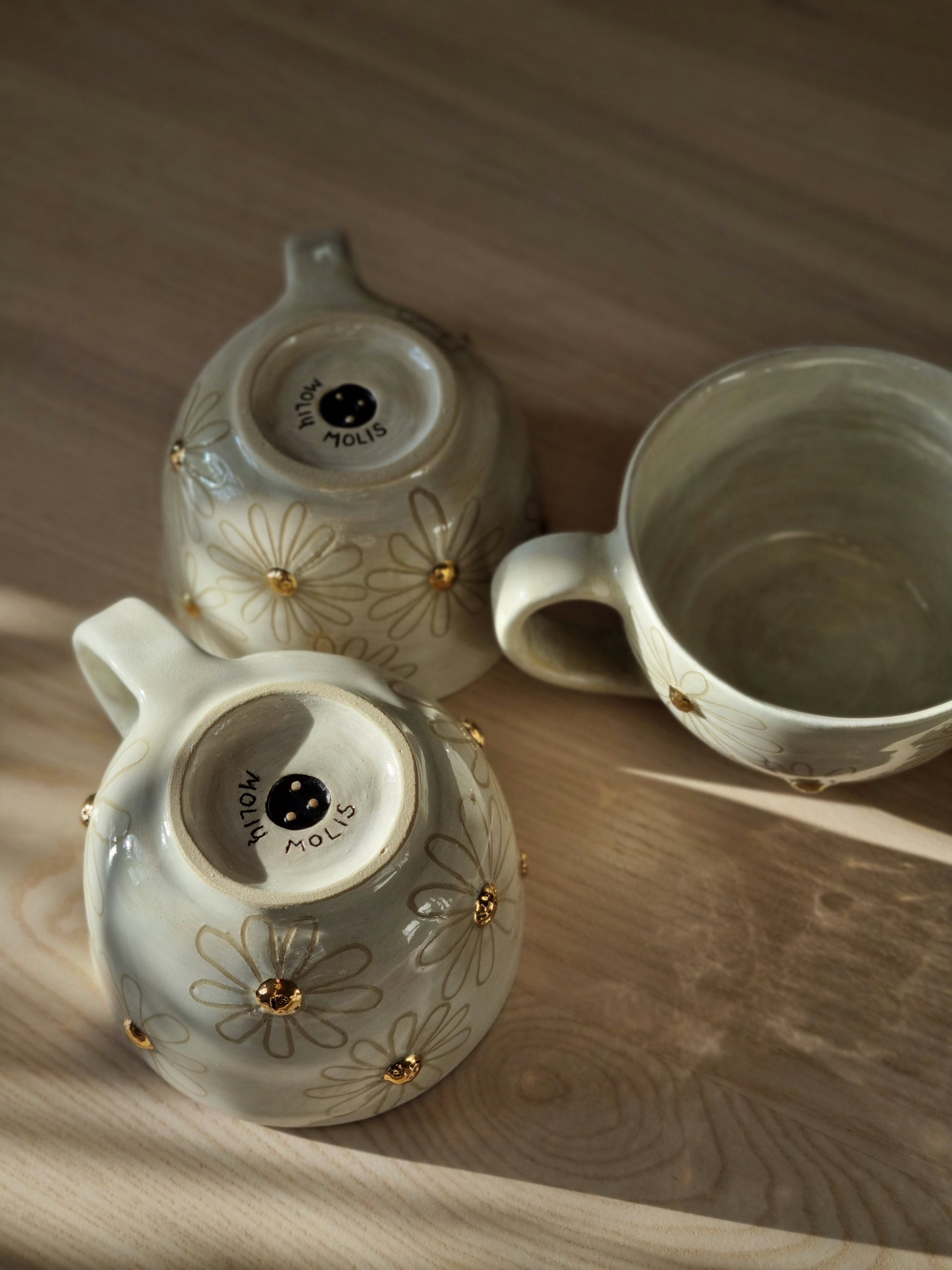 Puodelis lipdytas rankomis, todėl kiekvieno forma bei spalva gali skirtis.