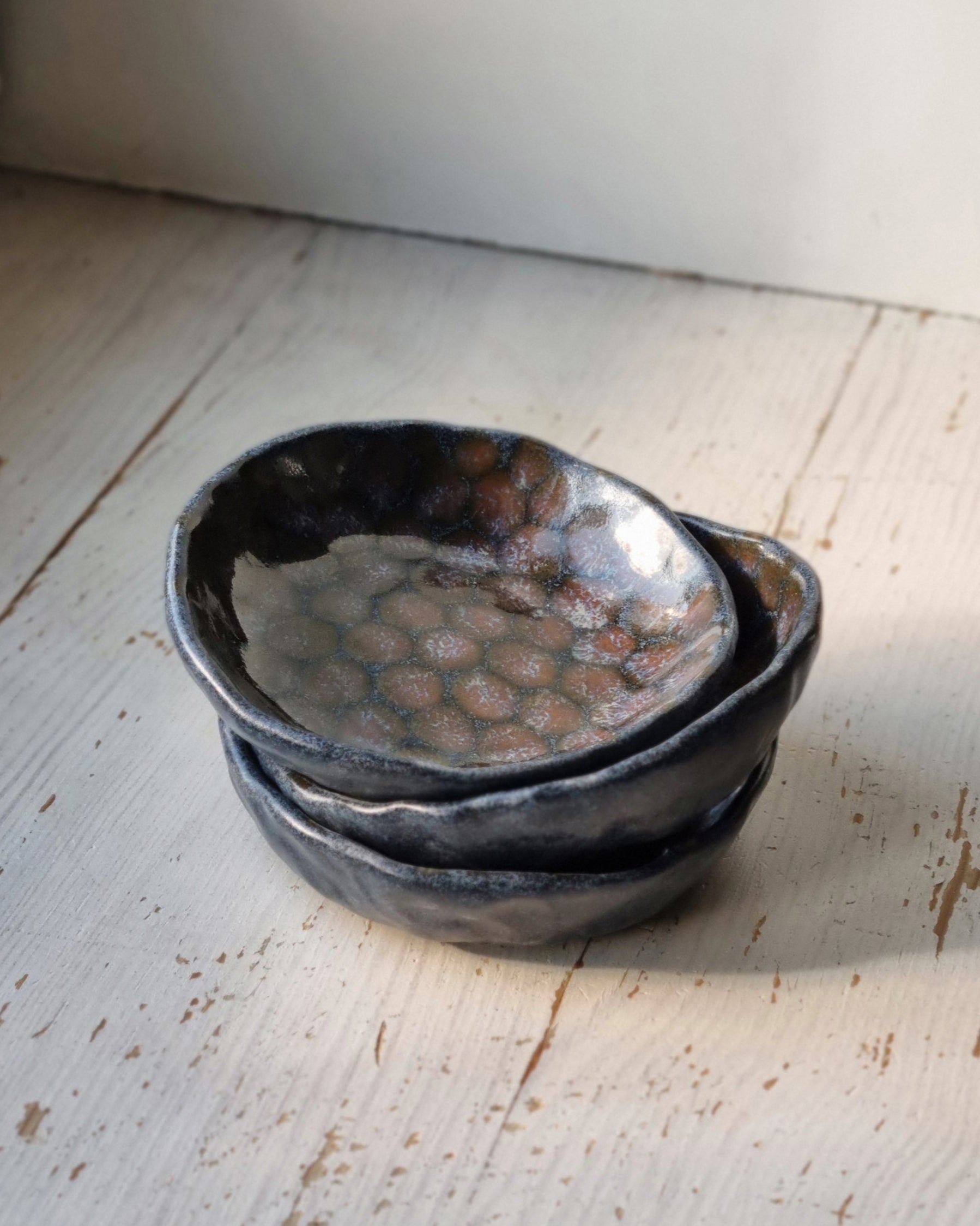 Mažas tamsių spalvų dubenėlis užkandžiams.