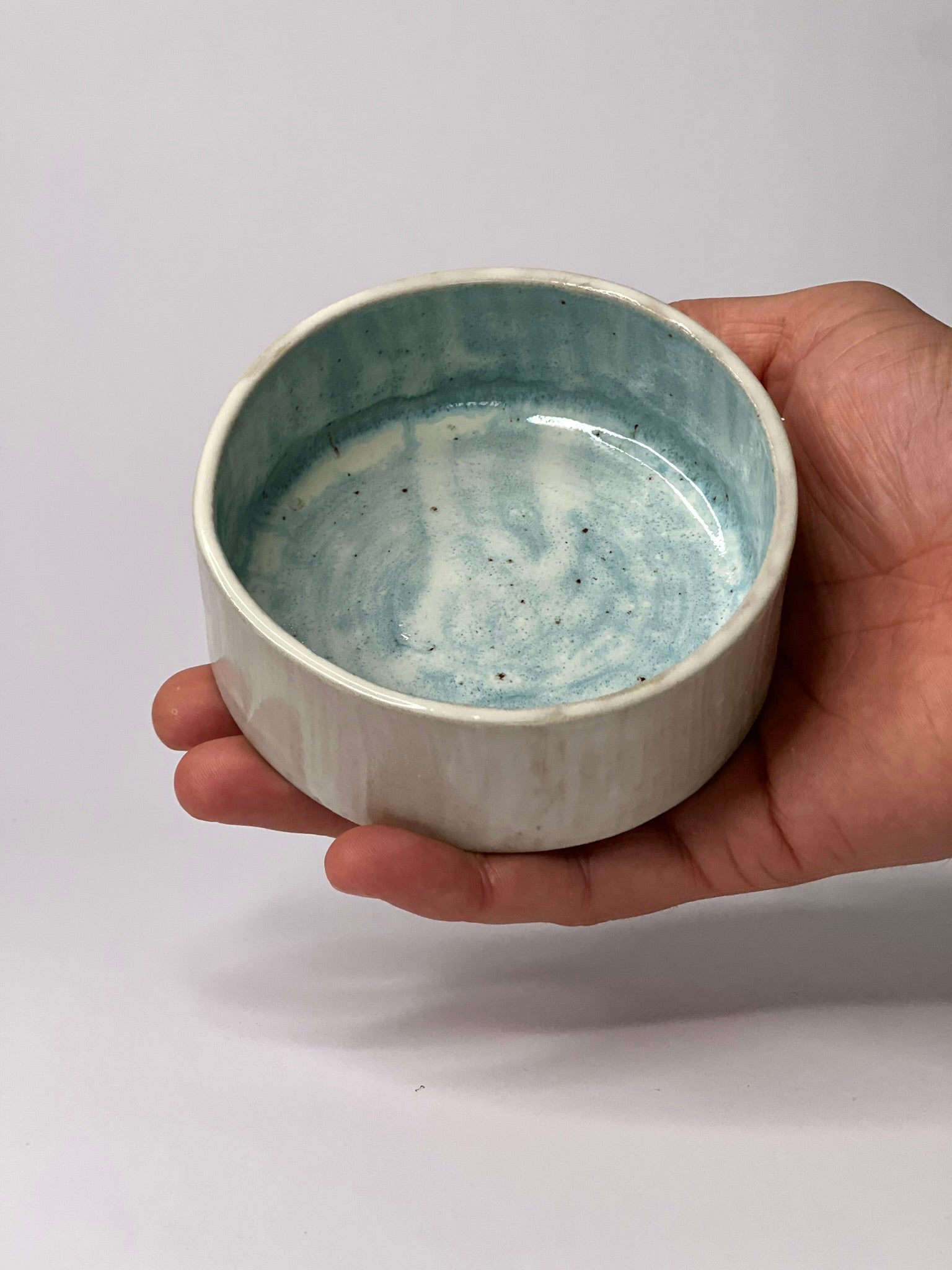Žydras mažas dubenėlis gyvūnams. Idealiai tinka katėms bei nedideliems šuniukams.